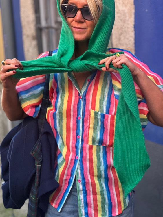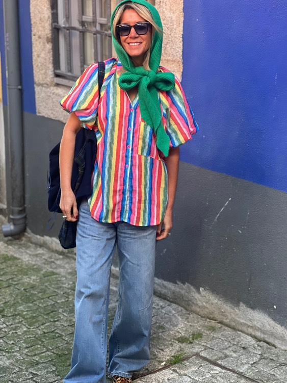 Home Roupa Camisa rainbow stripes Camisa rainbow stripes 40,00 € Desconto de %. Comprar Contactar Adicionar à wishlist Tamanho único / Talla única. Medida de cava a cava/de sisa a sisa: +/- 59 cm. Altura do ombro até abaixo/del hombro hasta abajo: +/- 68 cm (frente) e 72 cm (costas). Manga - medida em torno de/alrededor: +/-60 cm. Composição/Composición: 100% Poliéster. Pode haver variações de tons devido à iluminação/Puede haber variaciones de tonos debido a la iluminación. Partilhar