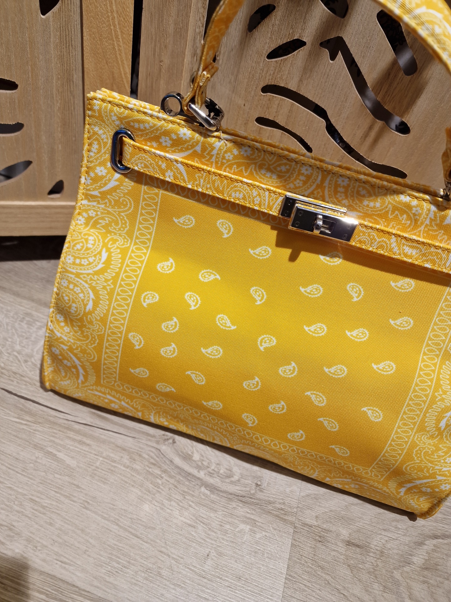 Home Acessórios Mala Bandana Amarela Mala Bandana Amarela 40,00 € Desconto de %. O produto encontra-se sem stock. Adicionar à wishlist Tamanho único/Talla única. Largura: +/- 34 cm. Altura: +- 25,5 cm. Profundidade em baixo: +/- 15 cm. Composição/Composición: Exterior. 100% Algodão. Interior: 100% Poliéster. Pode haver variações de tons devido à iluminação/Puede haber variaciones de tonos debido a la iluminación. Partilhar