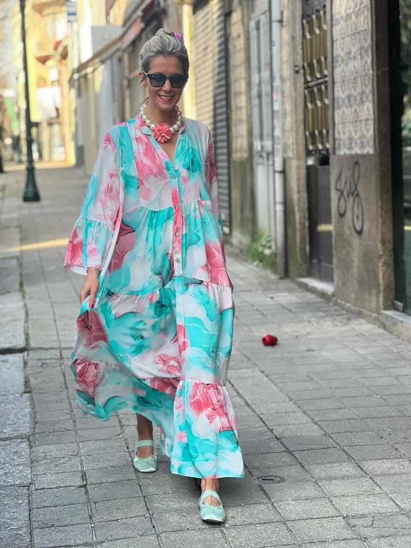 Home Vestidos Vestido Aquarela Vestido Aquarela 1 unidades em stock 59,00 € Desconto de %. Comprar Contactar Adicionar à wishlist Vestido comprido/Vestido largo. Tamanho único/ Talla única. Medida de Cava a cava/Medida de sisa a sisa: +/- 59 cm. Medida à volta do braço/Medida alrededor del brazo: +/- 40 cm. Composição/Composición: 100% Viscose. Pode haver variações nos tons devido à iluminação/Puede haber variaciones de tonos debido a la iluminación. Partilhar
